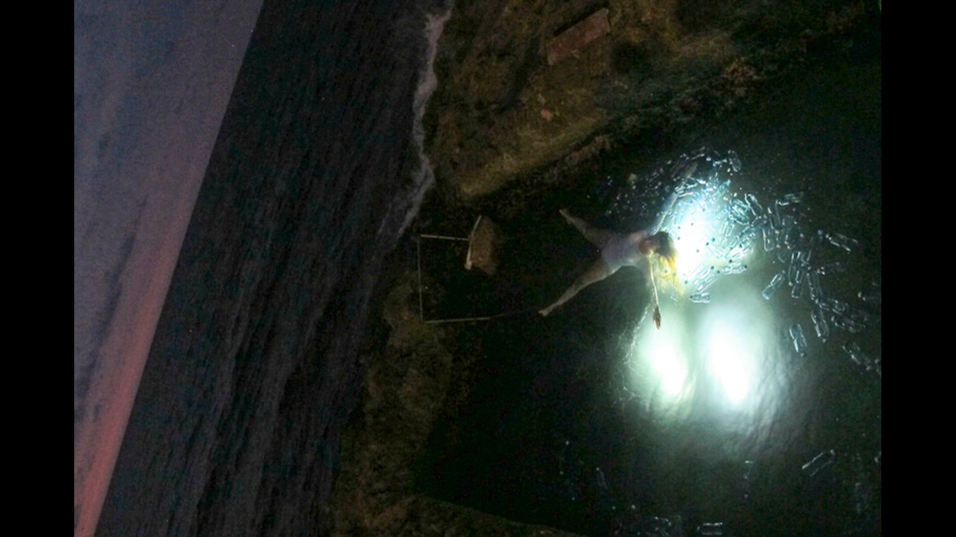 Christin Paige Minnotte performing Disposable Ethic at the 12th Havana Biennial in the ocean at Bustamante Art Space in Havana, Cuba